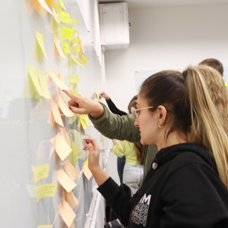 Durante a apresentação dos especialistas as equipes já estavam trabalhando. Seguindo o Método SPRINT, enquanto as equipes ouviam atentamente os especialistas, questões importantes já eram anotados em post-its no formato "CNP - Como Nós Podemos...". Finalizada a apresentação dos especialistas é hora de colar todos os CNPs na parede e, com a ajuda do Facilitador, organizar por afinididade e em seguida fazer uma votação para identificar os mais relevantes.