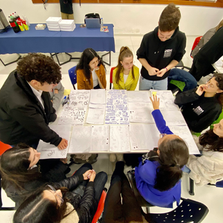 O passo seguinte foi Combinar Ideias e Mapa. Neste momento as equipes retornam ao mapa iniciado no dia anterior e complementam com novos insights vindos da pesquisa ou até mesmo da combinação das anotações gerando novas ideias.