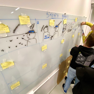 01. Museu da Arte: ao final da noite anterior cada equipe gerou esboços de um storyboard em 3 folhas A4. Hora de colar tudo e expor suas ideias.